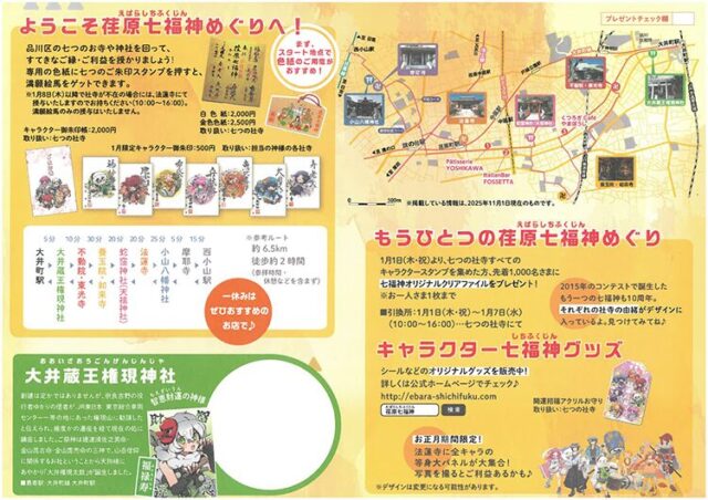 荏原エリアに点在する七つの社寺を巡り、個性豊かなキャラクター七福神のスタンプを集める「もうひとつの荏原七福神めぐり」がお正月期間に開催されます。キャラクター七福神は誕生から節目を迎え、元旦から全てのスタンプを集めた方には先着でオリジナルクリアファイルのプレゼントも用意されています。各社寺では限定グッズの販売も行われ、定番の荏原七福神めぐりとあわせて楽しめる、歩いて巡る開運イベントです。